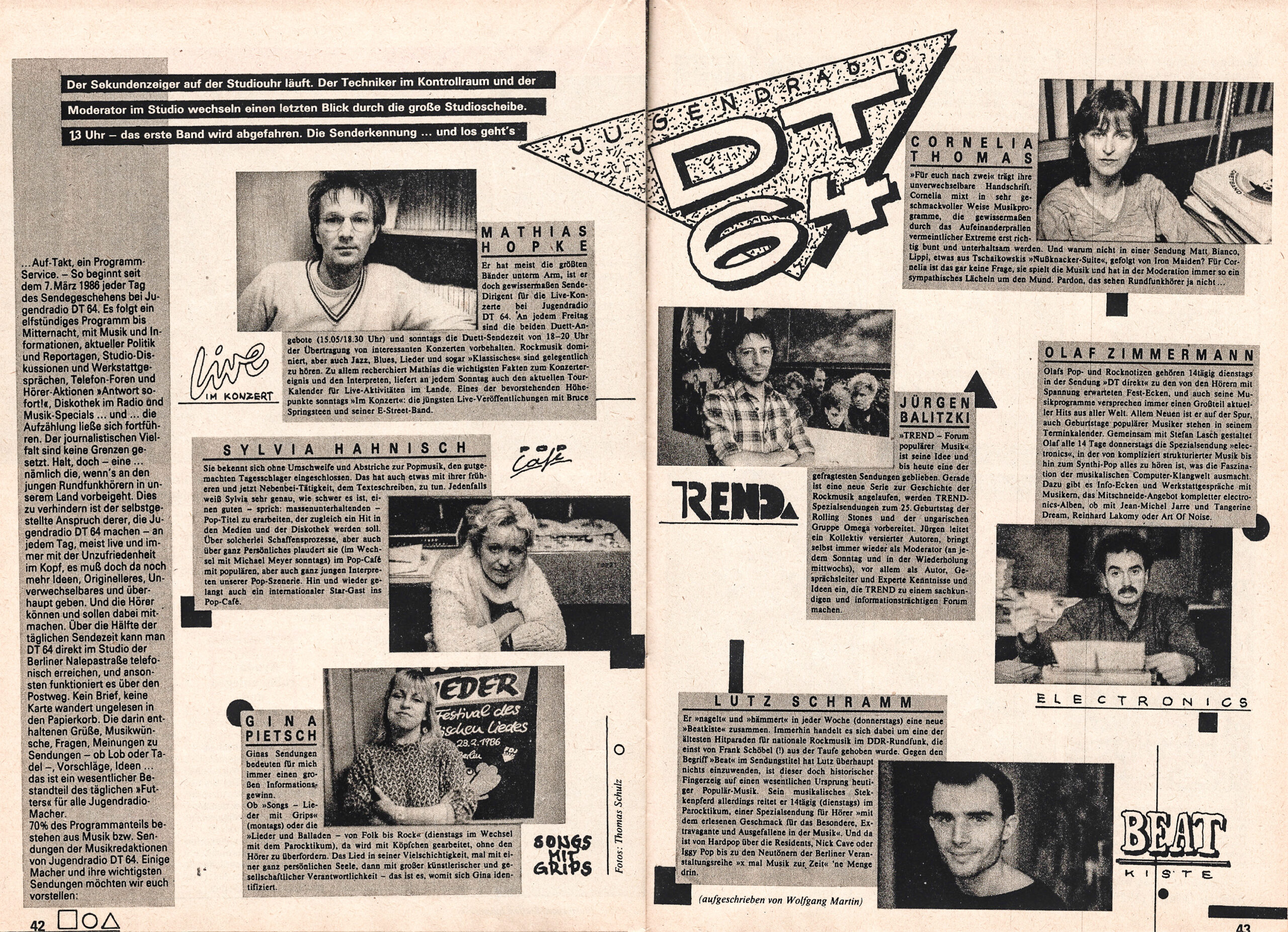 29.06.1964 – Wegen der positiven Hörerreaktion wird sechs Wochen später das Nachmittagsprogramm des Berliner Rundfunks zum „Jugendstudio DT64“ umgestaltet. Empfangbar DDR-weit über UKW und MW.